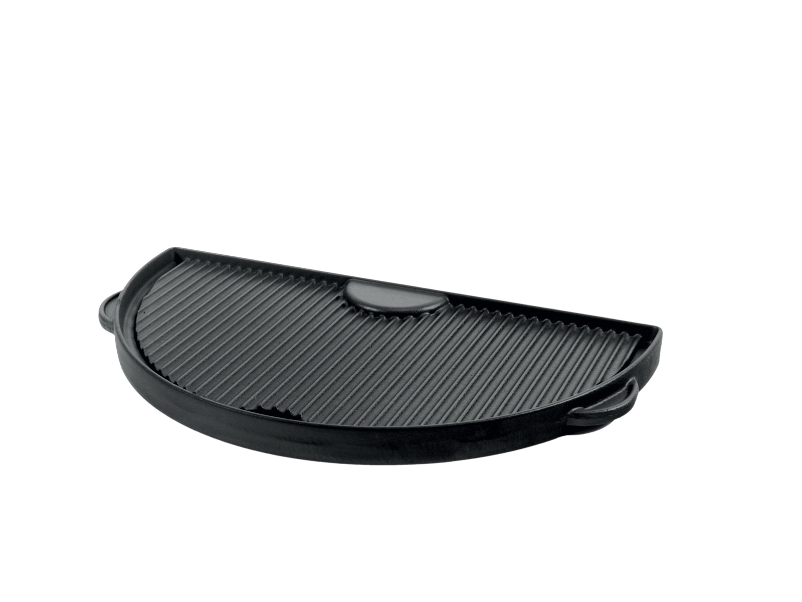 Grill Guru Half Moon Grillplaat – praktisch en veelzijdig voor je Large of vergelijkbare barbecue. Eén kant is vlak voor groenten of vis, de andere kant geribbeld voor steaks en gemarineerd vlees zodat overtollig vocht makkelijk wegloopt. Gemaakt van hoogwaardig gietijzer voor een perfecte grillervaring, keer op keer