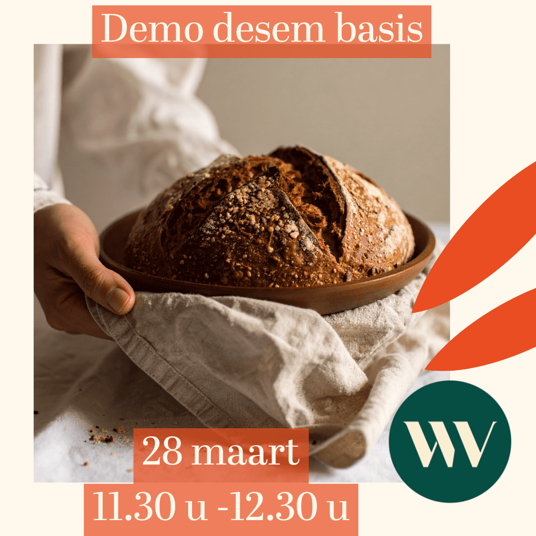 In deze korte, praktische demo van één uur nemen we je mee in de wereld van desembrood. Perfect voor wie worstelt met een desem of graag wil starten met zelfdesem.